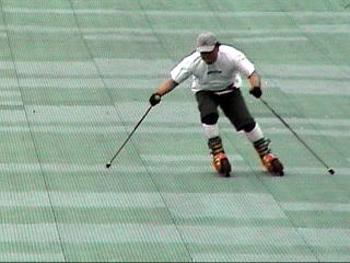 ズレが起こるとはいえ雪上のスキーのようにはすれません。